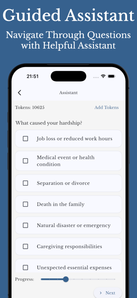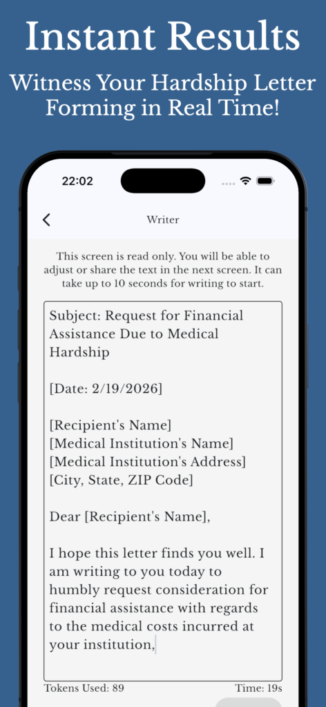 Ta aplikacja została zaprojektowana do tworzenia przekonujących i spersonalizowanych listów dotyczących trudności finansowych przy pomocy sztucznej inteligencji.
